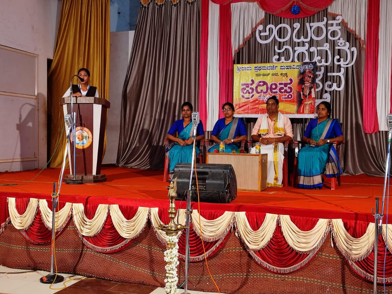 ವೇದಿಕೆಯಲ್ಲಿ ಪ್ರಾಂಶುಪಾಲರಾದ ಶ್ರೀ.ಕೃಷ್ಣಪ್ರಸಾದ್, ವಾಣಿಜ್ಯ ಉಪನ್ಯಾಸಕಿ ಹಾಗೂ ಸಾಂಸ್ಕೃತಿಕ ಸಂಘದ ನಿರ್ದೇಶಕಿ ಶ್ರೀಮತಿ ವಿನುತಾಲಕ್ಷ್ಮಿ ಉಪಸ್ಥಿತರಿದ್ದರು. ಕು. ಹರ್ಷಿತಾ ಅಂತಿಮ ಬಿ. ಎಸ್ಸಿ, ಸ್ವಾಗತಿಸಿ, ಕಾರ್ಯಕ್ರಮ ನಿರೂಪಿಸಿದರು.