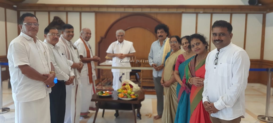 ಮಂಗಳೂರು : ತುಳು ಭಾಷೆಯನ್ನು ಕರ್ನಾಟಕ ರಾಜ್ಯದ ಎರಡನೇ ಭಾಷೆಯಾಗಿ ಆಯ್ಕೆ ಮಾಡಲು ಡಾ. ಮೋಹನ್ ಆಳ್ವ ಅಧ್ಯಕ್ಷತೆಯಲ್ಲಿ ವರದಿ ಸಮಿತಿ ರೂಪಿಕರಿಸಿರುವುದು ತುಳುವರಲ್ಲಿ ಆಶಾದಾಯಕ ಭಾವನೆ ಮೂಡಿಸಿದೆ. ಅದೇ ರೀತಿ ಕರ್ನಾಟಕ ಸರಕಾರದ ಈ ತೀರ್ಮಾನ ಶ್ಲಾಘನೀಯವಾಗಿದೆ ಎಂದು ಡಾ. ಡಿ ವೀರೇಂದ್ರ ಹೆಗಡೆಯವರು ಅಭಿಪ್ರಾಯಪಟ್ಟರು. ಅವರು ಅಖಿಲ ಭಾರತ ತುಳು ಒಕ್ಕೂಟ ನೂತನ ಅಧ್ಯಕ್ಷರಾದ ಎ.ಸಿ ಭಂಡಾರಿಯವರು ಮತ್ತು ಪದಾಧಿಕಾರಿಗಳು ಹೆಗಡೆಯವರ ಭೇಟಿ ಸಂದರ್ಭದಲ್ಲಿ ನೂತನ ಸಮಿತಿಗೆ ಶುಭಾಶೀರ್ವಾದ ನೀಡಿ ಮಾತನಾಡಿದರು.
