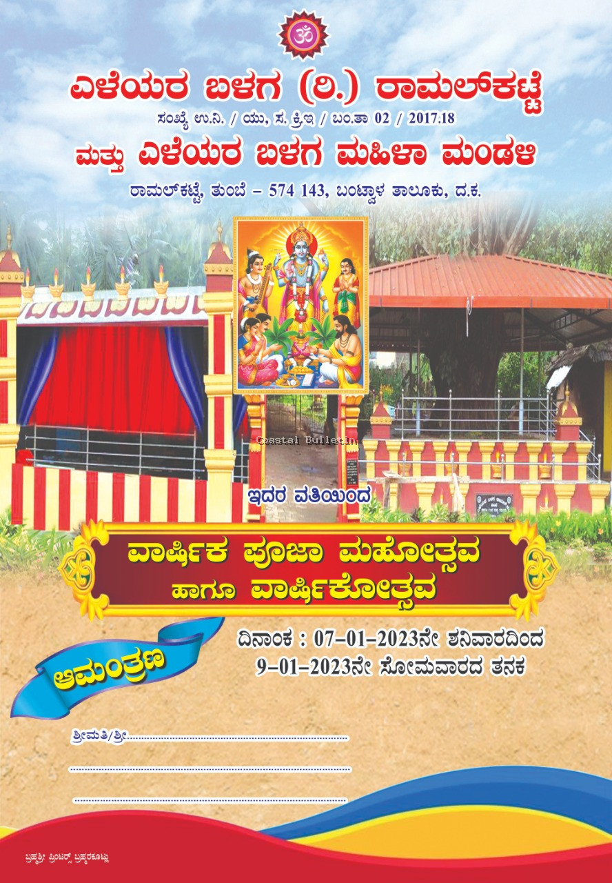 ಬಂಟ್ವಾಳ : ಐತಿಹಾಸಿಕ ಏಳು ದಿವಸದ ಸಷ್ಟಿ ಜಾತ್ರೆಯ ಕಾರ್ಯಕ್ರಮಕ್ಕೆ ಹೆಸರುವಾಸಿಯಾಗಿರುವ ತುಂಬೆ ರಾಮಲಕಟ್ಟೆಯಲ್ಲಿ ಅಂತಹ ವೈಭವದ ದಿನವನ್ನು ಮೆಲುಕು ಹಾಕುವ ಸಲುವಾಗಿ,ಸಾಮಾಜಿಕ ಧಾರ್ಮಿಕ ಶೈಕ್ಷಣಿಕ ಹಾಗೂ ಸಾಂಸ್ಕೃತಿಕ ಕ್ಷೇತ್ರಗಳಲ್ಲಿ ನಿರಂತರ 42ವರ್ಷಗಳಿಂದ ಸೇವಾ ಚಟುವಟಿಕೆಗಳನ್ನು ಮಾಡುತ್ತಿರುವ ಎಳೆಯರ ಬಳಗ (ರಿ) ರಾಮಲ್ ಕಟ್ಟೆ ಹಾಗೂ ಎಳೆಯರ ಬಳಗ ಮಹಿಳಾ ಮಂಡಳಿಯು ಮೂರು ದಿನದ ವಾರ್ಷಿಕ ಪೂಜಾ ಮಹೋತ್ಸವ ಹಾಗೂ ವಾರ್ಷಿಕೋತ್ಸವನ್ನು ಜ.7 ರಿಂದ 9 ರವರೆಗೆ ಹಮ್ಮಿಕೊಂಡಿದೆ.