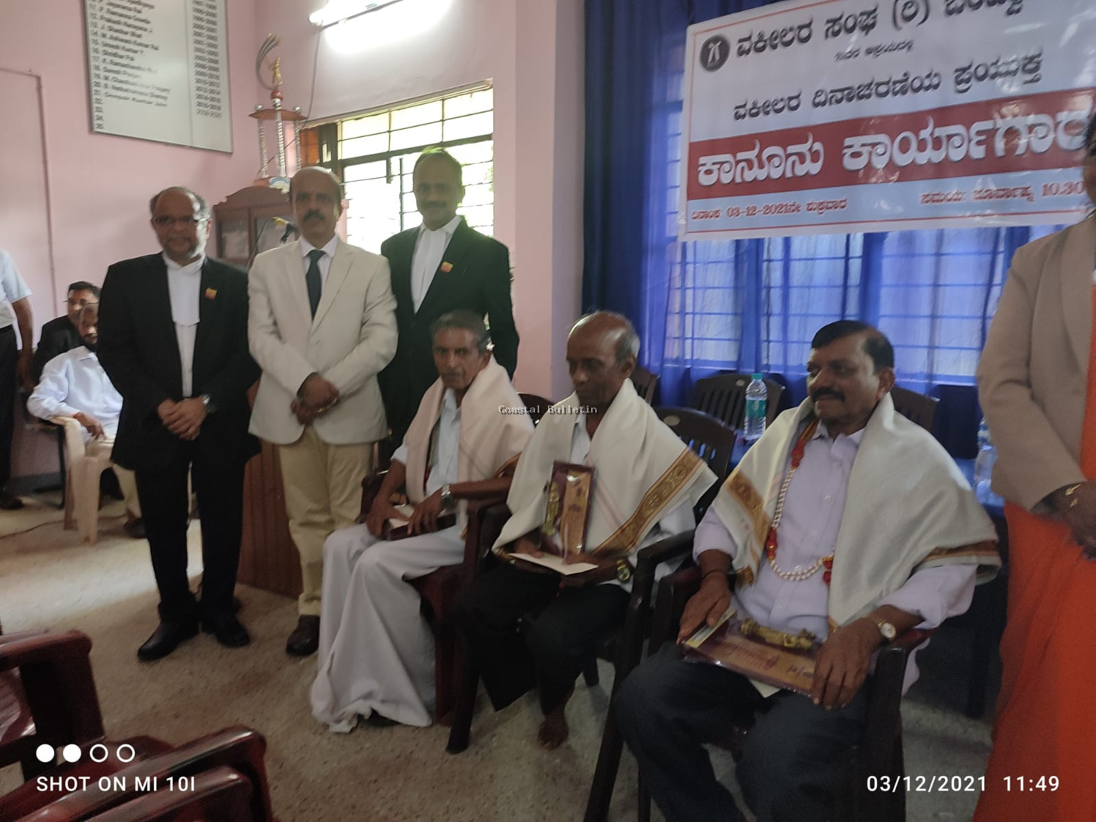 ಬಂಟ್ವಾಳ ತಾಲ್ಲೂಕಿನ ವಕೀಲರ ಸಂಘದ ವತಿಯಿಂದ ವಕೀಲರ ದಿನಾಚರಣೆ ಪ್ರಯುಕ್ತ ಶುಕ್ರವಾರ ಏರ್ಪಡಿಸಿದ್ದ ಕಾನೂನು ಕಾರ್ಯಗಾರದಲ್ಲಿ ಹಿರಿಯ ಸಿಬ್ಬಂದಿಗಳನ್ನು ಸನ್ಮಾನಿಸಲಾಯಿತು.