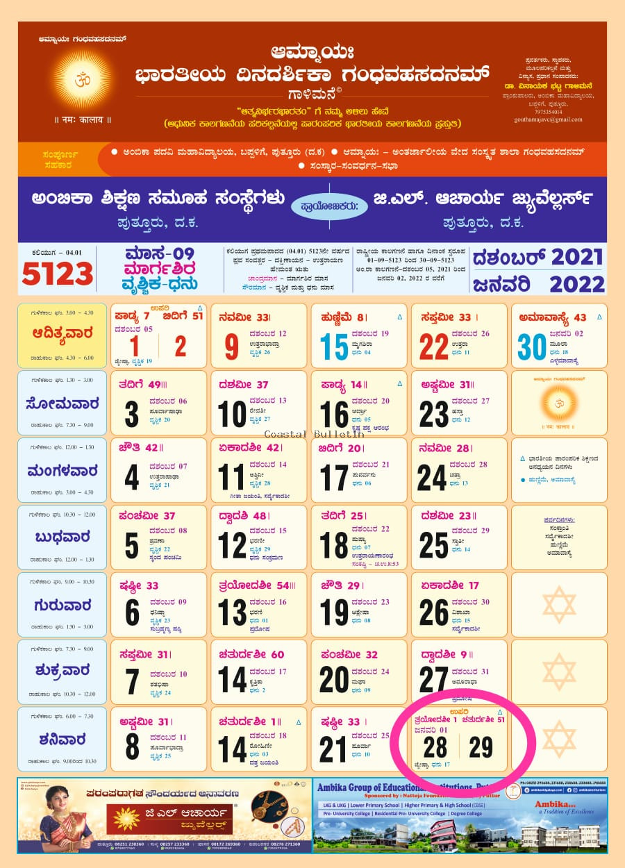 ವ್ಯಾವಹಾರಿಕವಾಗಿ ನಾವು ಇಂಗ್ಲೀಷ್ ಕ್ಯಾಲೆಂಡರ್ ಬಳಕೆಗೆ ಒಗ್ಗಿಕೊಂಡಿರಬಹುದು. ಆದರೆ ನಮ್ಮ ಹಬ್ಬ ಹರಿದಿನಗಳಿಗೂ ಈ ಕ್ಯಾಲೆಂಡರಿಗೂ ಸಂಬಂಧವೇನಿಲ್ಲ. ಅವುಗಳೇನಿದ್ದರೂ ತಿಥಿ ಆಧಾರಿತ. ನಮ್ಮ ನಿತ್ಯ ಬದುಕಿನ ಶುಭ ಕಾರ್ಯ, ಸಮಾರಂಭ, ಮುಹೂರ್ತಗಳಿಗೂ ತಿಥಿ, ವಾರ, ನಕ್ಷತ್ರಗಳೇ ಪ್ರಧಾನ. ಜನನ ಮರಣದಲ್ಲೂ ಶ್ರಾದ್ಧ, ಪುಣ್ಯತಿಥಿ ಹೀಗೆ ಆಚರಿಸುವಾಗಲೂ ಪಂಚಾಂಗ ಆಧಾರಿತ ತಿಥಿಗಳು ಮುಖ್ಯವಾಗುತ್ತವೆಯೇ ವಿನಃ ಕ್ಯಾಲೆಂಡರ್ ದಿನಾಂಕಗಳು