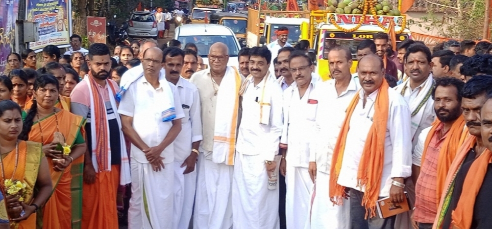 ಬಂಟ್ವಾಳ ತಾಲ್ಲೂಕಿನ ಬಡಗಬೆಳ್ಳೂರು ಗ್ರಾಮದ ಪ್ರಸಿದ್ಧ ಶ್ರೀ ಕಾವೇಶ್ವರ ದೇವಸ್ಥಾನದಲ್ಲಿ ನಡೆಯಲಿರುವ ಬ್ರಹ್ಮಕಲಶೋತ್ಸವ ಮತ್ತು ಜಾತ್ರಾ ಮಹೋತ್ಸವ ಪ್ರಯುಕ್ತ ಸೋಮವಾರ ಸಂಜೆ ಕೊಳತ್ತಮಜಲು ಎಂಬಲ್ಲಿ ಹೊರಟ ಆಕರ್ಷಕ ಹೊರೆಕಾಣಿಕೆ ಮೆರವಣಿಗೆಗೆ ದೇವಳದ ವ್ಯವಸ್ಥಾಪನಾ ಸಮಿತಿ ಅಧ್ಯಕ್ಷ ರಘು ಎಲ್.ಶೆಟ್ಟಿ ಚಾಲನೆ ನೀಡಿದರು.