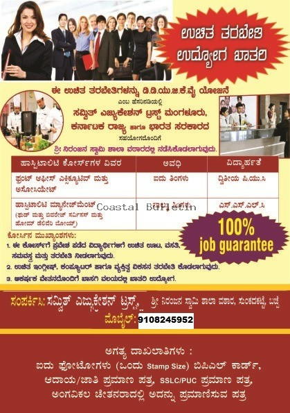 ಈ ಉಚಿತ ತರಬೇತಿಯಲ್ಲಿ ದ್ವಿತೀಯ ಪಿ.ಯು.ಸಿ ವಿದ್ಯಾರ್ಹತೆ ಹೊಂದಿದ ವಿದ್ಯಾರ್ಥಿಗಳಿಗೆ ಐದು ತಿಂಗಳಿನ ಫ್ರಂಟ್ ಆಫೀಸ್ ಎಕ್ಸಿಕ್ಯುಟಿವ್ ಮತ್ತು ಅಸೋಸಿಯೇಟ್ ಕೋರ್ಸ್ ಲಭ್ಯವಿದೆ. ಹಾಗೂ ಎಸ್.ಎಸ್.ಎಲ್.ಸಿ ಆದವರಿಗೆ ನಾಲ್ಕು ತಿಂಗಳಿನ ಹಾಸ್ಪಿಟಾಲಿಟಿ ಮ್ಯಾನೇಜ್ ಮೆಂಟ್ ಕೋರ್ಸ್