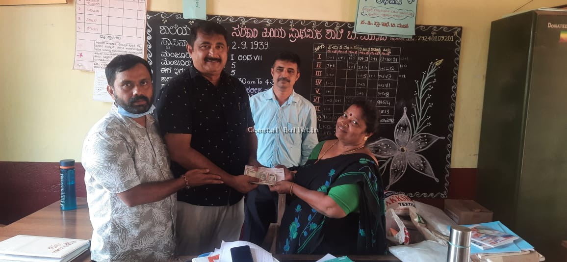 ಬಂಟ್ವಾಳ: ಪುರಸಭಾ ವ್ಯಾಪ್ತಿಯ ಬಿ.ಸಿ.ರೋಡಿನ ಅಜ್ಜಿಬೆಟ್ಟು ಪರಿಸರದಲ್ಲಿರುವ ಬಿ.ಮೂಡ ಸರ್ಕಾರಿ ಹಿರಿಯ ಪ್ರಾಥಮಿಕ ಶಾಲೆಯಲ್ಲಿ ಕರ್ತವ್ಯ ನಿರ್ವಹಿಸುತ್ತಿರುವ ಗೌರವ ಶಿಕ್ಷಕಿಯರ ವೇತನಕ್ಕೆ ವಿನಿಯೋಗಿಸಲು ರೂ 70 ಸಾವಿರ ನೆರವು ನೀಡಲಾಯಿತು.