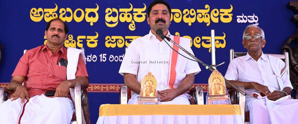 ಇಲ್ಲಿನ ಕಳ್ಳಿಗೆ ಗ್ರಾಮದ ದೇವಂದಬೆಟ್ಟು ಶ್ರೀ ಲಕ್ಷ್ಮೀ ವಿಷ್ಣುಮೂರ್ತಿ ದೇವಸ್ಥಾನದಲ್ಲಿ ಬ್ರಹ್ಮಕಲಶೋತ್ಸವ ಪ್ರಯುಕ್ತ ಶುಕ್ರವಾರ ನಡೆದ 'ದೇವರು-ಧರ್ಮ- ದೇವಾಲಯ' ಉಪನ್ಯಾಸ ಕಾರ್ಯಕ್ರಮದಲ್ಲಿ ಅವರು ಮಾತನಾಡಿದರು. ದೇವಳದ ವ್ಯವಸ್ಥಾಪನ ಸಮಿತಿ ಅಧ್ಯಕ್ಷ ರಮೇಶ್ ಕೆ ಉಪಾಧ್ಯಾಯ, ಬ್ರಹ್ಮ ಕಲಶ ಸಮಿತಿ ಗೌರವ ಸಲಹೆಗಾರ