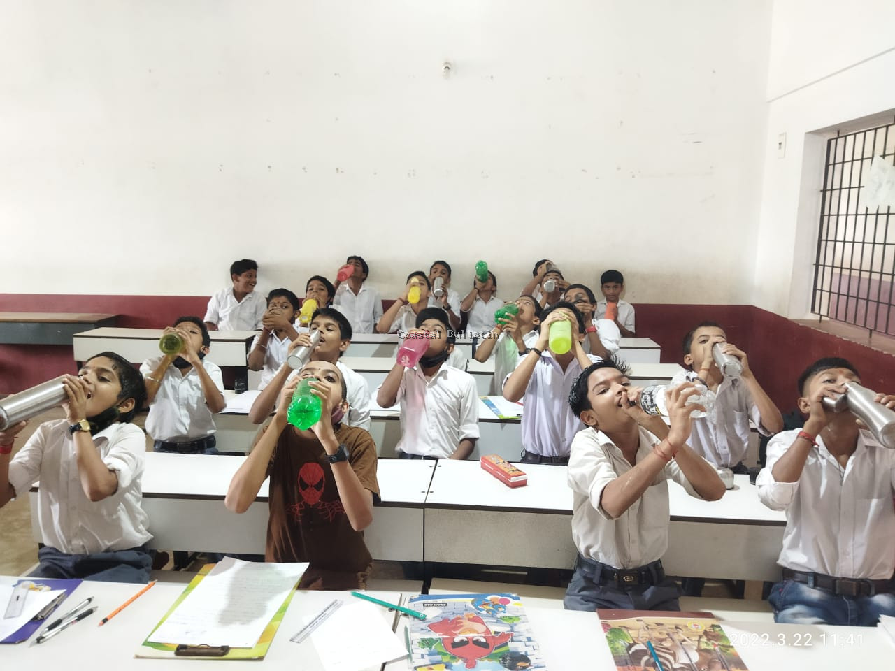 ಹರಿಸಿದ ಪುರಾಣ ಕಥೆಯನ್ನು ಮುಖ್ಯೋಪಾಧ್ಯಾಯ ರವಿರಾಜ್ ಕಣಂತೂರು ತಿಳಿಸಿದರು. ವಿದ್ಯಾರ್ಥಿ ನಾಯಕ ಪ್ರಣಾಮ್ ವಾಟರ್ ಬೆಲ್ ಕಾರ್ಯಕ್ರಮಕ್ಕೆ ಚಾಲನೆ ನೀಡಿದರು. ವಿಜ್ಞಾನ ಅಧ್ಯಾಪಕರಾದ ರಮ್ಯ ಜೆ.ಅವರು ಗಡಸು ಹಾಗೂ ಕುಡಿಯಲು ಯೋಗ್ಯವಾದ ನೀರಿನ ಕುರಿತು ಪ್ರಾತ್ಯಕ್ಷಿಕೆಯನ್ನು ತೋರಿಸಿಕೊಟ್ಟರು. ೬ನೇ ತರಗತಿಯ ವಿದ್ಯಾರ್ಥಿಗಳು ನೀರಿನ ಕುರಿತು ಹಾಡು ಹಾಡಿದರು. ವಿಜ್ಞಾನ ಪ್ರಯೋಗಾಲಯದಲ್ಲಿ ವಿದ್ಯಾರ್ಥಿಗಳಿಂದ ನೀರಿನ ಬಗ್ಗೆ ವಿವಿಧ ಪ್ರಯೋಗಗಳನ್ನು ತೋರಿಸಿಕೊಟ್ಟರು.