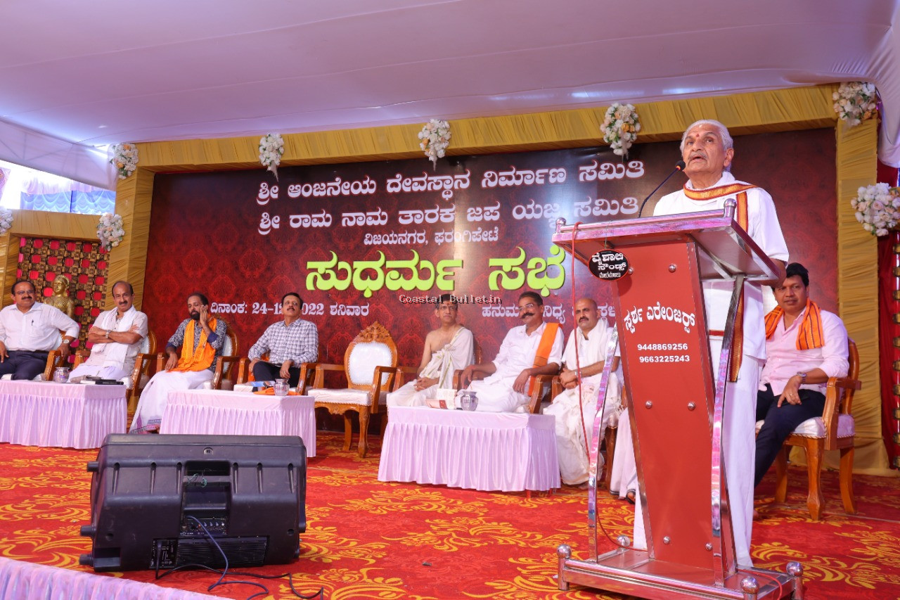 ಶ್ರೀರಾಮ ನಾಮ ತಾರಕ ಜಪ ಯಜ್ಞ ಸಮಿತಿ ಫರಂಗಿಪೇಟೆ, ಶ್ರೀ ಆಂಜನೇಯ ದೇವಸ್ಥಾನ ನಿರ್ಮಾಣ ಸಮಿತಿ ಫರಂಗಿಪೇಟೆ ಇದರ ಆಶ್ರಯದಲ್ಲಿ ಶನಿವಾರ ಫರಂಗಿಪೇಟೆಯ ವಿಜಯನಗರದಲ್ಲಿ ನಡೆದ ಶ್ರೀರಾಮ ನಾಮ ತಾರಕ ಜಪಯಜ್ಞದ ಸುಧರ್ಮ ಸಭೆಯಲ್ಲಿ ಮಾತನಾಡಿದರು. ಪ್ರಜಾಸತ್ತಾತ್ಮಕ, ಸಮಾಜವಾದಿ, ಜಾತ್ಯಾತೀತ ದೇಶವೆಂಬ ಕಲ್ಪನೆ ಹುಟ್ಟಿಕೊಂಡದ್ದೇ ರಾಮರಾಜ್ಯದಿಂದ, ರಾಮರಾಜ್ಯದಲ್ಲಿ ಇದೆಲ್ಲವೂ ಇತ್ತು ಎಂದು ತಿಳಿಸಿದರು. ಶ್ರೀರಾಮ ಕೋಮುವಾದಿ ಎನ್ನುವ ಆರೋಪ ಕೆವರಿಂದ ಕೇಳಿ ಬಂದಿದೆ, ಎಲ್ಲಾ ವರ್ಗದ ಜನರನ್ನು ಸಮಾನವಾಗಿ ಕಂಡವನು. ಆದ್ದರಿಂದ ಶ್ರೀ ರಾಮ ಕೋಮುವಾದಿ ಆಗಲು ಸಾಧ್ಯವಿಲ್ಲ. ಶ್ರೀ ರಾಮ ಕೋಮುವಾದಿ ಆಗದಿದ್ದರೆ ಅವನ ಜೊತೆಯಿರುವ ಹಿಂದೂಗಳು ಕೋಮುವಾದಿಗಳಾಗಲು ಸಾಧ್ಯವಿಲ್ಲ. ಸಮಾಜದ ಮೇಲಿನ ಆಕ್ರಮಣವನ್ನು ಹಿಂದೂ ಸಮಾಜ ಒಟ್ಟಾಗಿ ಎದುರಿಸಬೇಕಾಗಿದೆ ಎಂದು ತಿಳಿಸಿದರು.