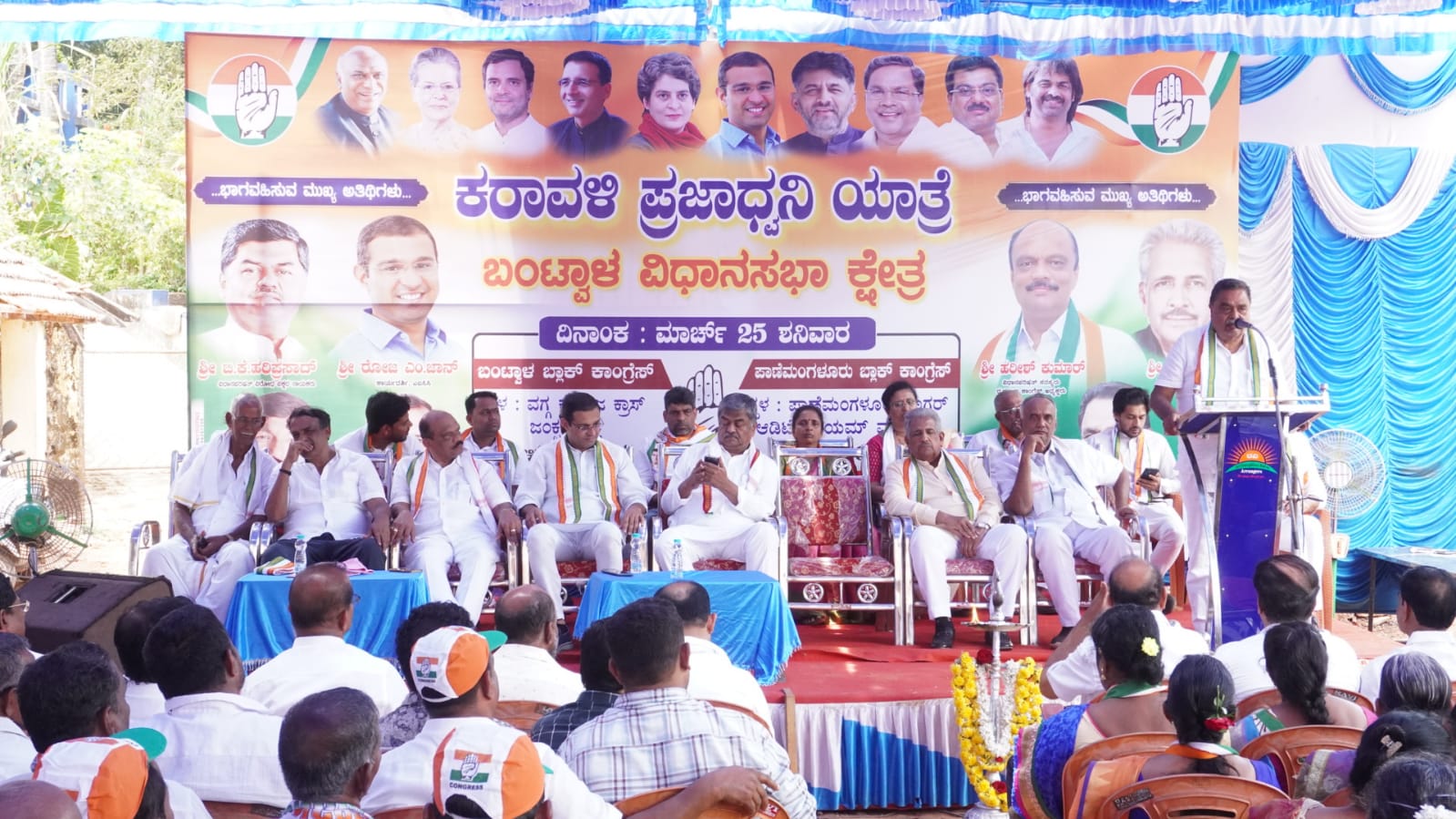 ಕೆಪಿಸಿಸಿ ನಿರ್ದೇಶನದ ಮೇರೆಗೆ ಪಾಣೆಮಂಗಳೂರು ಹಾಗೂ ಬಂಟ್ವಾಳ ಬ್ಲಾಕ್ ಕಾಂಗ್ರೆಸ್ ಆಶ್ರಯದಲ್ಲಿ ಶನಿವಾರ ವಗ್ಗದ ಕಾರಿಂಜ ಕ್ರಾಸ್ ಬಳಿ ನಡೆದ ಕರಾವಳಿ ಪ್ರಜಾಧ್ವನಿ ಯಾತ್ರಾ ಕಾರ್ಯಕ್ರಮದಲ್ಲಿ ಭಾಗವಹಿಸಿ ಮಾತನಾಡಿದ ಅವರು, ಮೋದಿ ಸರಕಾರ ಬಂದು ಎರಡನೇ ಅವಧಿ ಕೂಡಾ ಮುಗಿಯುತ್ತಾ ಬಂದಿದ್ದು, ಇನ್ನು ಯಾವಾಗ ಮೋದಿ ಹೇಳಿದ ಅಚ್ಚೇ ದಿನ್ ಬರೋದೋ ಆ ದೇವರೇ ಬಲ್ಲ. ಹದಿನೈದು ಲಕ್ಷವೂ ಇಲ,್ಲ ಕಪ್ಪು ಹಣವೂ ಇಲ್ಲ, ಪೆಟ್ರೋಲ್ ಡೀಸೆಲ್ ನೂರರ ಗಡಿ ದಾಟಿ ಆಗಿದೆ. ಇದೇನಾ ಅಚ್ಚೆ ದಿನ ಎಂದವರು ಪ್ರಶ್ನಿಸಿದರು.