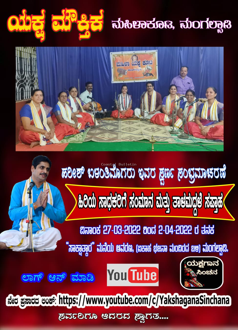 ಮಂಗಲ್ಪಾಡಿ: ಹರೀಶ್ ಬಳಂತಿಮೊಗರು ಇವರ ಸ್ವರ್ಣ ಸಂಭ್ರಮಾಚರಣೆಯ ಪ್ರಯುಕ್ತ ಹಿರಿಯ ಸಾಧಕರಿಗೆ ಸಂಮಾನ ಮತ್ತು ತಾಳಮದ್ದಳೆ ಸಪ್ತಾಹ ಮಾರ್ಚ್ 27 ರಿಂದ ಎಪ್ರಿಲ್ 2 ರ ತನಕ ಸಾಕ್ಷಾತ್ಕಾರ ಮನೆಯ ಆವರಣದಲ್ಲಿ ನಡೆಯಲಿದೆ.