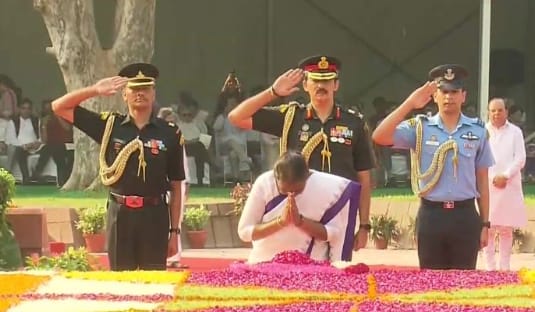 ನವದೆಹಲಿ : ರಾಷ್ಟ್ರಪಿತ ಮಹಾತ್ಮ ಗಾಂಧೀಜಿಯವರ ಜಯಂತಿ ಹಿನ್ನೆಲೆಯಲ್ಲಿ ರಾಷ್ಟ್ರಪತಿ ದ್ರೌಪದಿ ಮುರ್ಮು ಅವರು ಇಂದು ರಾಜ್ ಘಾಟ್ ಗೆ ತೆರಳಿ ಪುಷ್ಪ ನಮನ ಸಲ್ಲಿಸಿದರು.